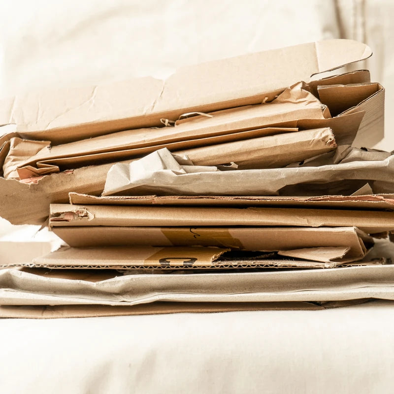 Our cardboard boxes are made entirely from waste paper, a recycled material. We want our cardboard boxes to be recycled again after use. That is why we use sustainable soy ink for all printing on the boxes. It is a by-product of soybean cultivation, non-toxic and 4x easier to recycle than conventional standard ink. If we use padding material, this is also made from recycled waste paper.